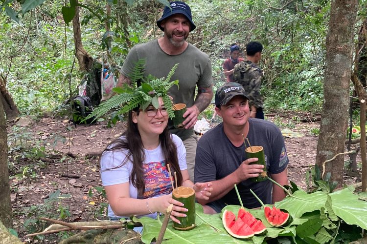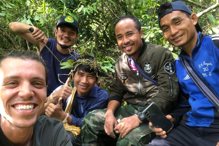 Volunteer with elephants at an Elephant Sanctuary in the forests of Mondulkiri, located in the remote Eastern Cambodia. The elephants are retired from their previous hard-working lives in the trekking and tourism industry, and now roaming free in their natural habitat.